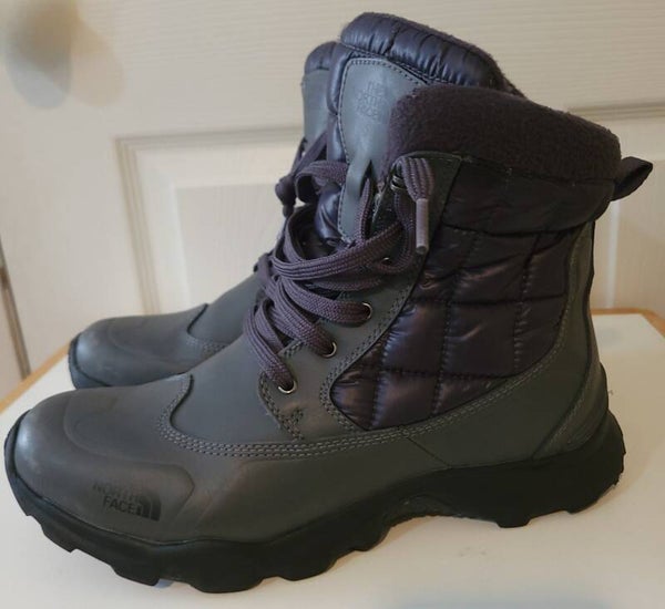 Size 8 NorthFace winter boots in dark gray with black. Zipper on inner side of boots. Scuffed slightly in front but soles in great condition. Damage to inner left boots but can be easily repaired.