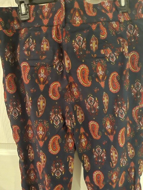 Blue & Burgandy Paisley Stretchy Pants, Size Large.