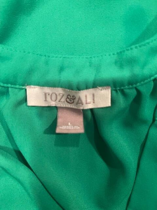 Size Large Roz & Ali short Sleeve Shirt. Beatiful Emerald Green Color. Soft and silky feel.
