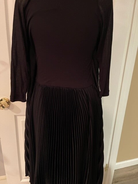 Black Pleated Dress with long sheer sleeves. Size Small. Back of dress is tapered dress.