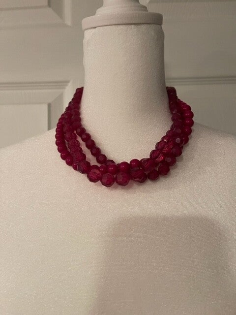 Ruby Red beaded necklace. Silver clasp. From Express.