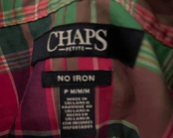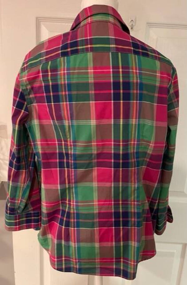 Patterned pink and green shirt, button down & long sleeve. Size PM.