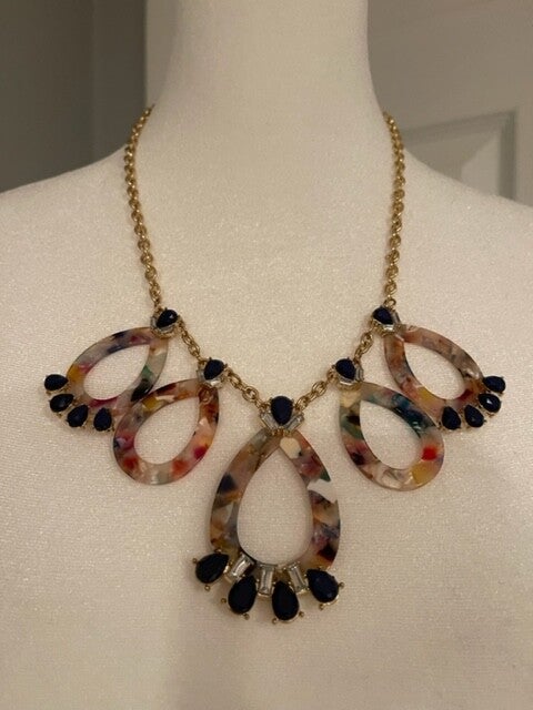 Unique looking 5 ring necklace. Beads are in different colors. Gold tone.