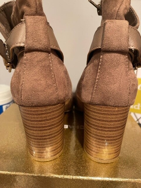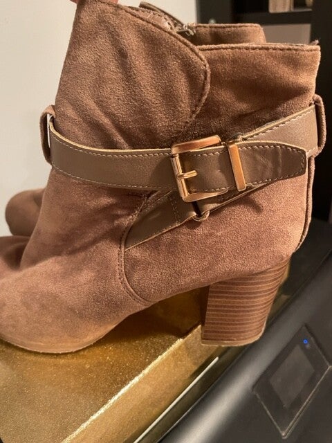 Light Brown Boots. Buckle on side. 2 inches high. Zipper on side. Size 10. Great Condition