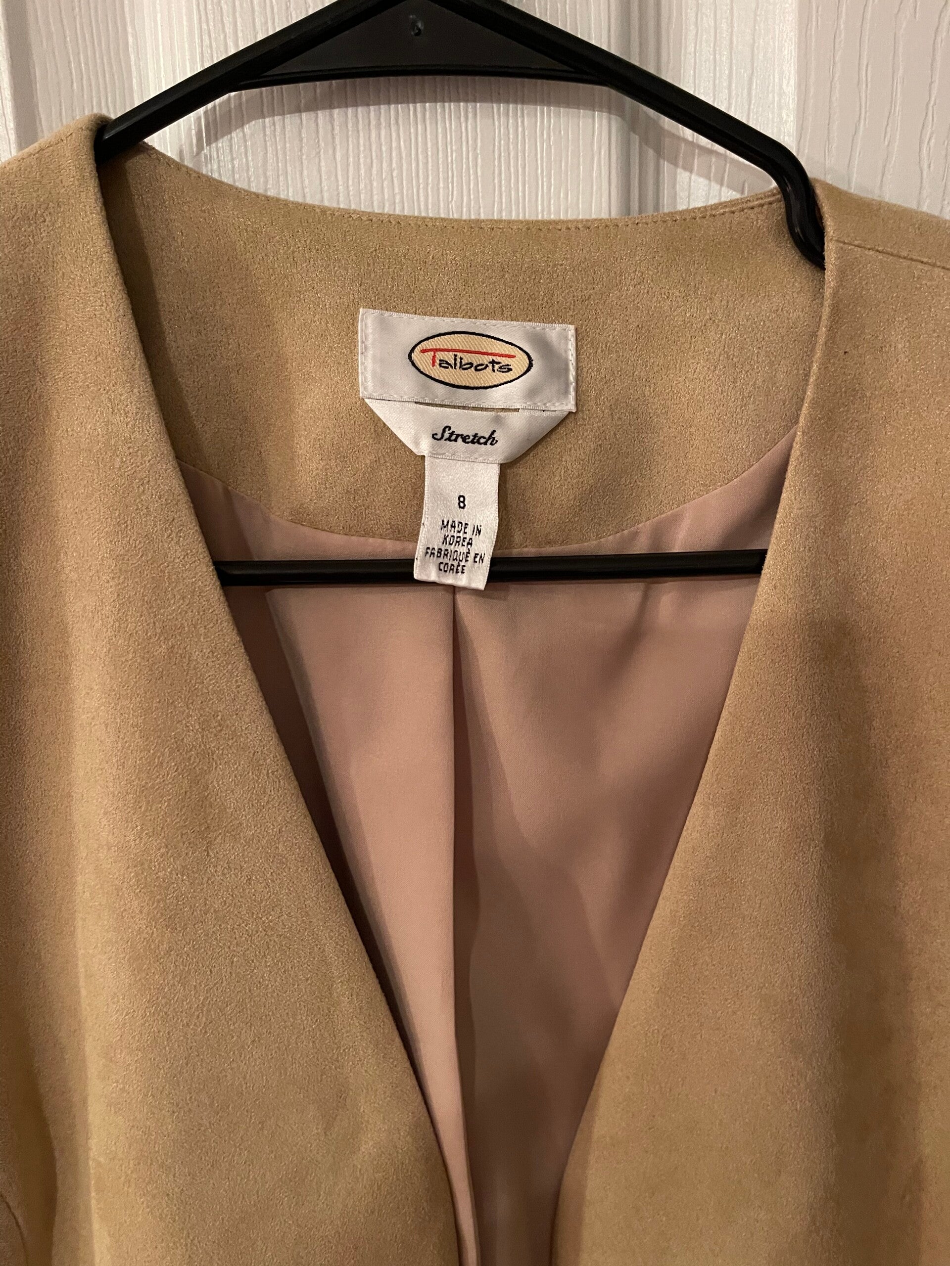 Beige suade feeling material blazer. 3/4 length. Long sleeve. Size 8